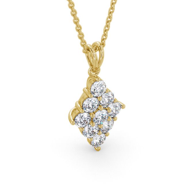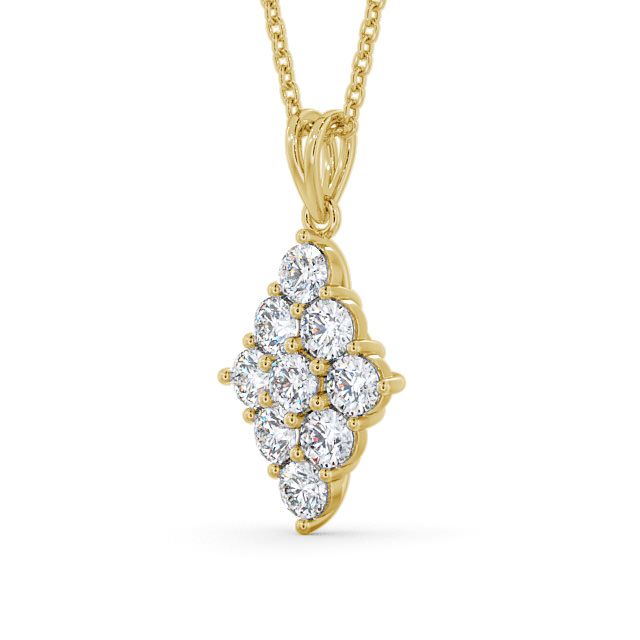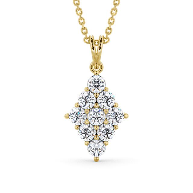 Silian cluster diamond pendant in 9K Yellow Gold. Stunning and regal design pendant with nine matching sized round shaped diamonds to form a marquise pattern. The pendant is available with a range of metal and chain options. We also offer a free design service for any customised changes that you may require.